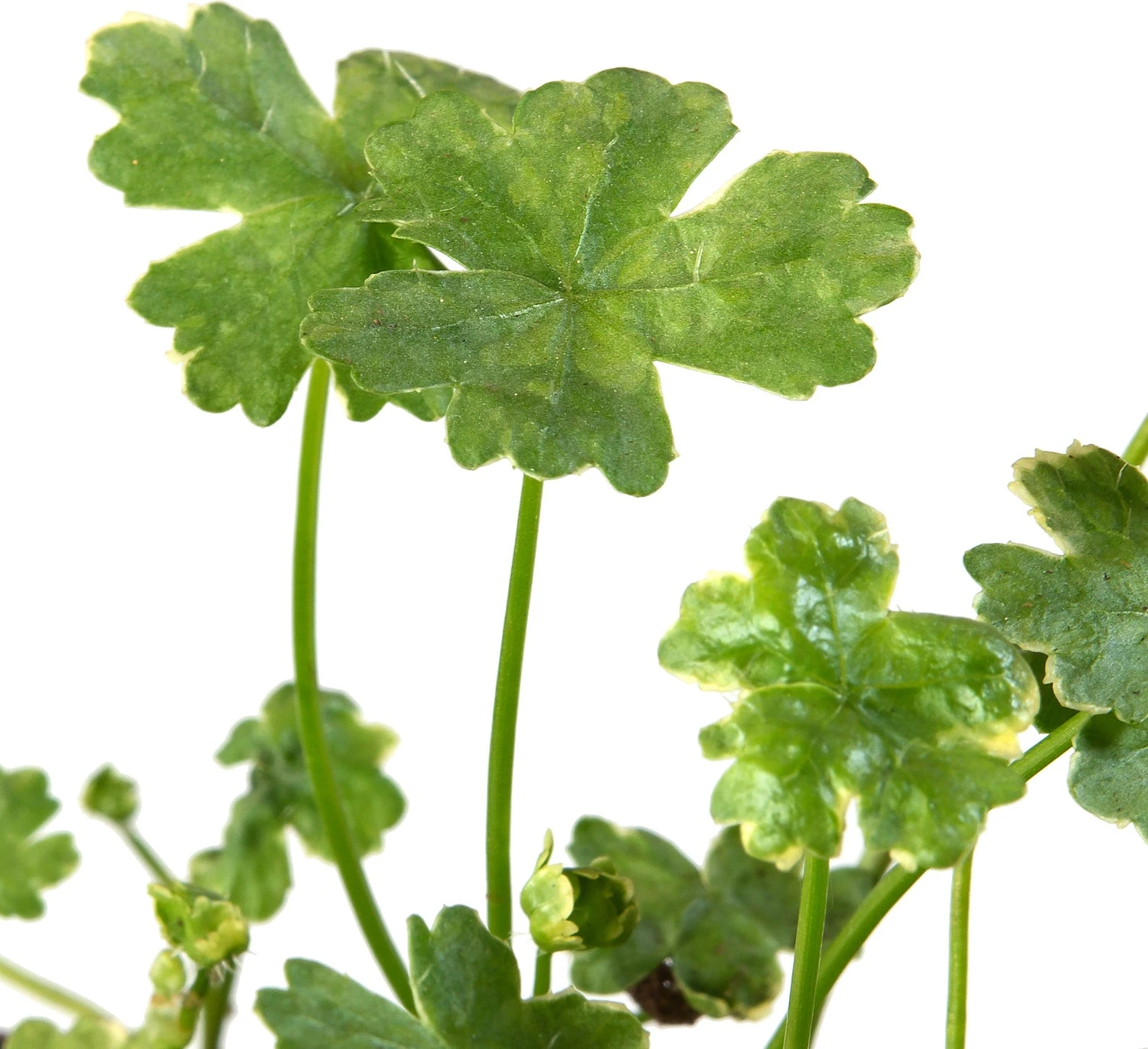 Ontdek de charme van de Bonte Waternavel, ook wel bekend als Hydrocotyle sibthorpioides ‘Variegata’. Deze veelzijdige waterplant, afkomstig uit het noorden van Zuid-Amerika, is een prachtige toevoeging aan elke vijver of waterpartij. Met zijn decoratieve, bonte ronde blaadjes en de unieke navelachtige plaatsing van het steeltje, biedt deze plant niet alleen esthetische waarde maar draagt ook bij aan een gezond vijvermilieu.