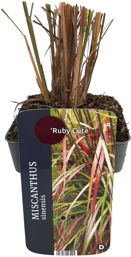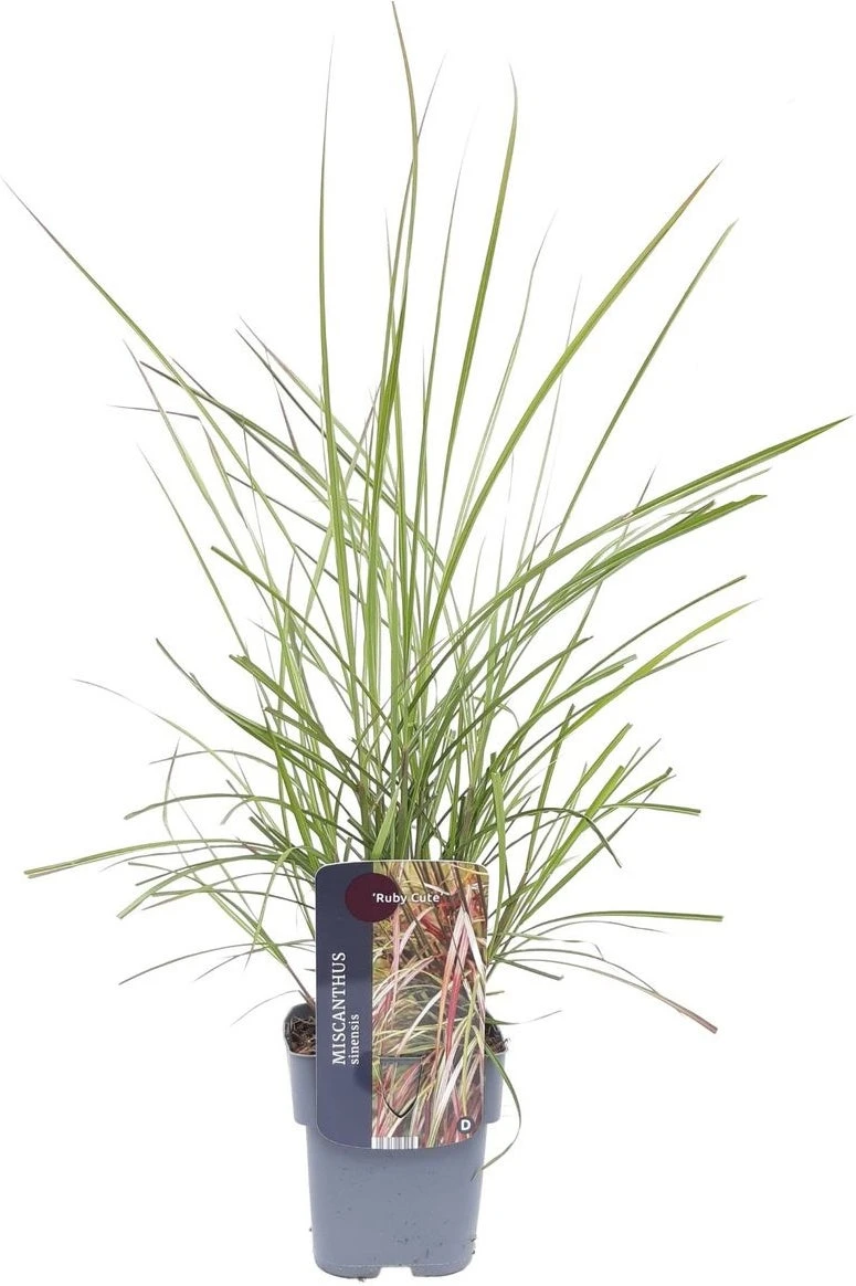 Chinees riet ‘Ruby Cute’ kenmerkt zich door zijn smalle bladeren en pluizige, wit-roze halmen die vanaf augustus verschijnen. De plant bereikt een hoogte van ongeveer 130 cm en biedt een sierlijke uitstraling gedurende de zomer tot in de herfst.