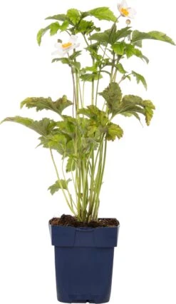 De Anemone hybrida ‘Honorine Jobert’ kenmerkt zich door haar drie-delige blad en prachtige witte bloemen die van de late zomer tot diep in de herfst bloeien. De plant bereikt een hoogte van ongeveer 20 cm en verspreidt zich gestaag, wat bijdraagt aan een dynamische en volle tuin. Deze herfstanemoon is ideaal voor de border, mits de bodem goed vochthoudend is.