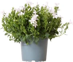 Het Kruipklokje heeft een maximale groeihoogte van ongeveer 20 cm en prefereert een zonnige tot halfschaduwrijke standplaats. De plant bloeit rijkelijk van juni tot augustus met prachtige witte bloemen. De bladeren zijn groen en vormen een mooi contrast met de witte bloemen. Het is belangrijk om de plant regelmatig water te geven, waarbij de grond licht vochtig blijft.