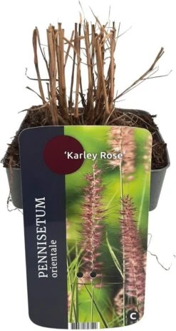 Het Lampenpoetsersgras, of Pennisetum orientalis ‘Karley Rose’, is een overblijvende plant die tot 50 cm hoog kan worden. Deze plant bloeit van juli tot september met opvallende roze aartjes. Het gras is ideaal voor plaatsing in volle zon tot halfschaduw en heeft een voorkeur voor een goed doorlatende grond. Ondanks dat het een zonminnende plant is, heeft het Lampenpoetsersgras alleen extra water nodig tijdens langdurige droogte.