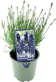 De ‘Hidcote’ lavendel is een overblijvende, groenblijvende plant die bekend staat om zijn diep paarsblauwe bloemen en grijsgroene bladeren. Deze soort kan een hoogte van 50-60 cm bereiken en bloeit van juli tot augustus. Voor optimale groei heeft hij een zonnige standplaats en een kalkrijke, goed doorlatende grond nodig. Ook in de winter behoudt hij zijn aantrekkelijke uiterlijk, wat hem een uitstekende keuze maakt voor jaar-rond interesse in de tuin.