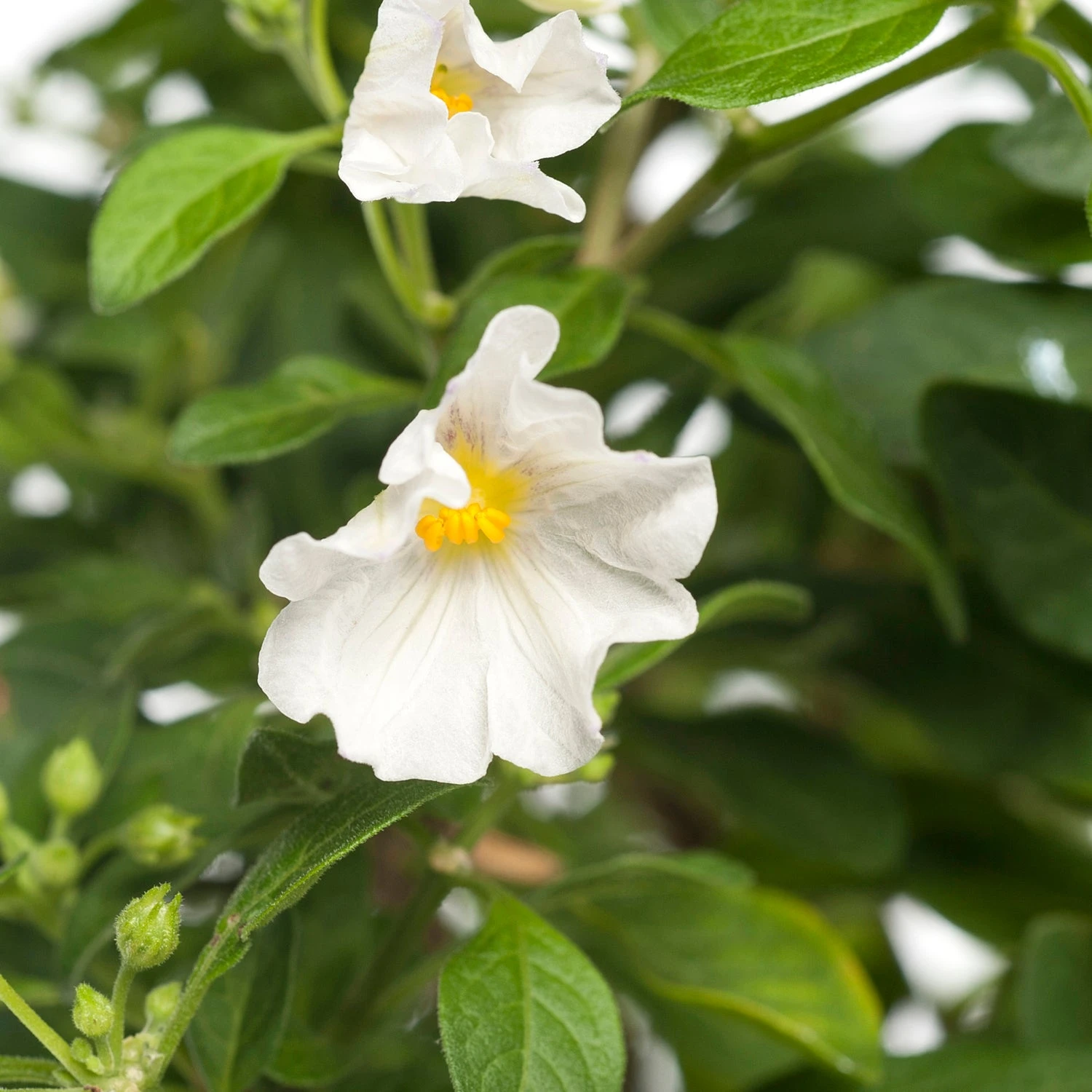 De Nachtschade op stam, ook bekend als Solanum rantonnetti ‘Charles White’, is een charmante en veelzijdige plant die bekend staat om zijn overvloed aan delicate witte bloemen. Deze (sub-)tropische plant is niet alleen een visuele aanwinst voor elke tuin of balkon, maar heeft ook een interessante achtergrond, aangezien hij deel uitmaakt van de grote Solanum-familie waartoe ook de aardappel behoort.