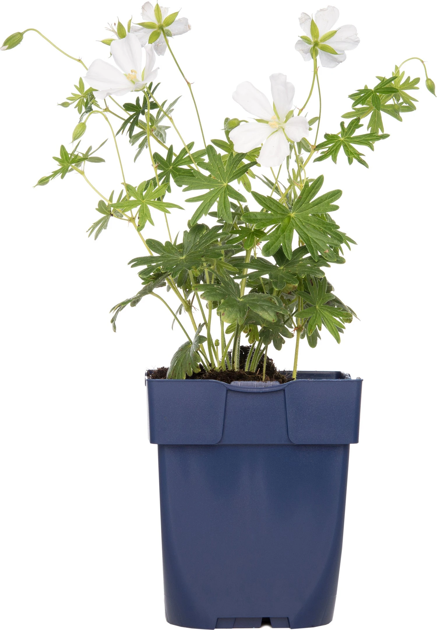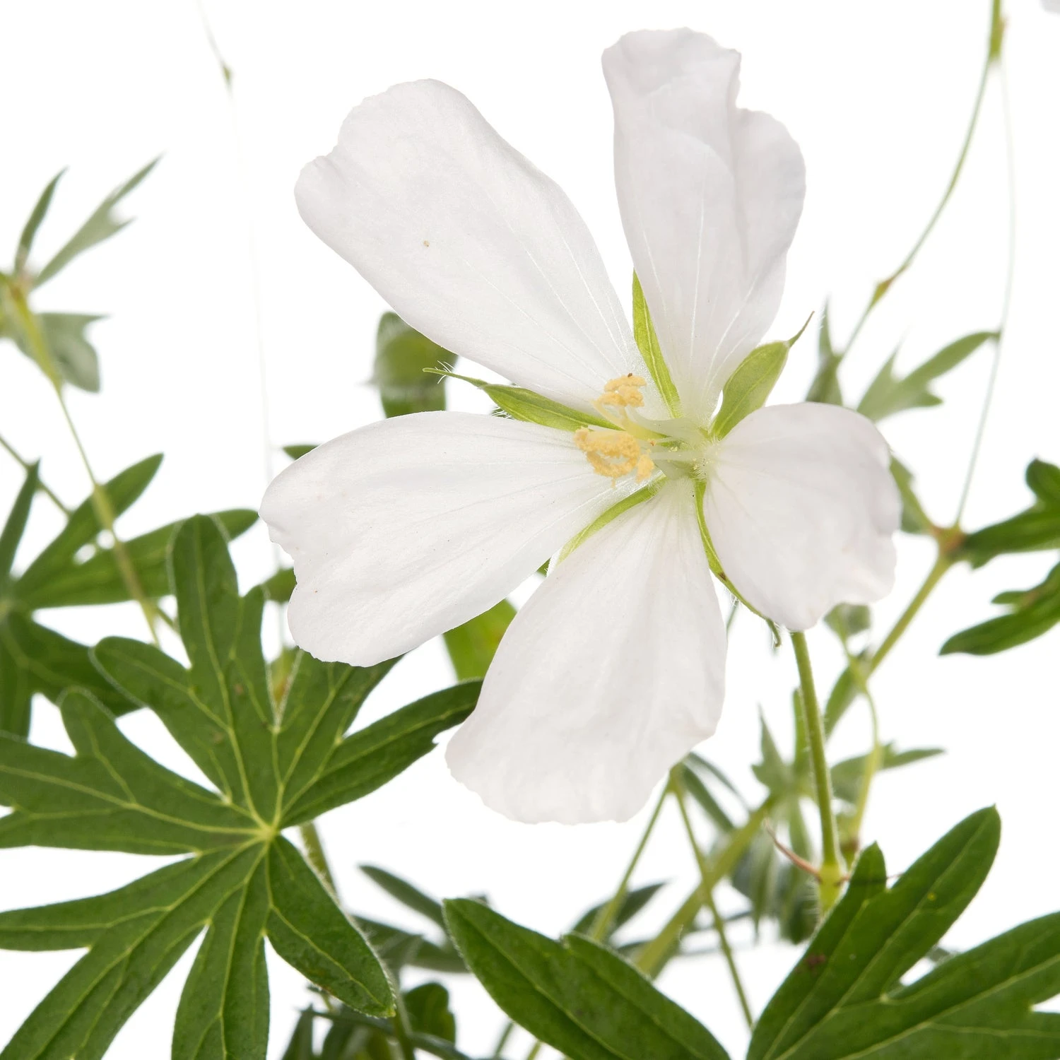 De Ooievaarsbek gedijt het best op een licht beschaduwde tot halfzonnige plaats en vereist een goed doorlatende, ietwat droge grond. Deze plant is vorstbestendig en komt elk jaar weer terug, met een maximale groeihoogte van ongeveer 20 cm. De witte bloemen en groene bladeren zorgen voor een frisse uitstraling in elke tuinsetting, of het nu in borders of als onderdeel van een gemengde beplanting is.
