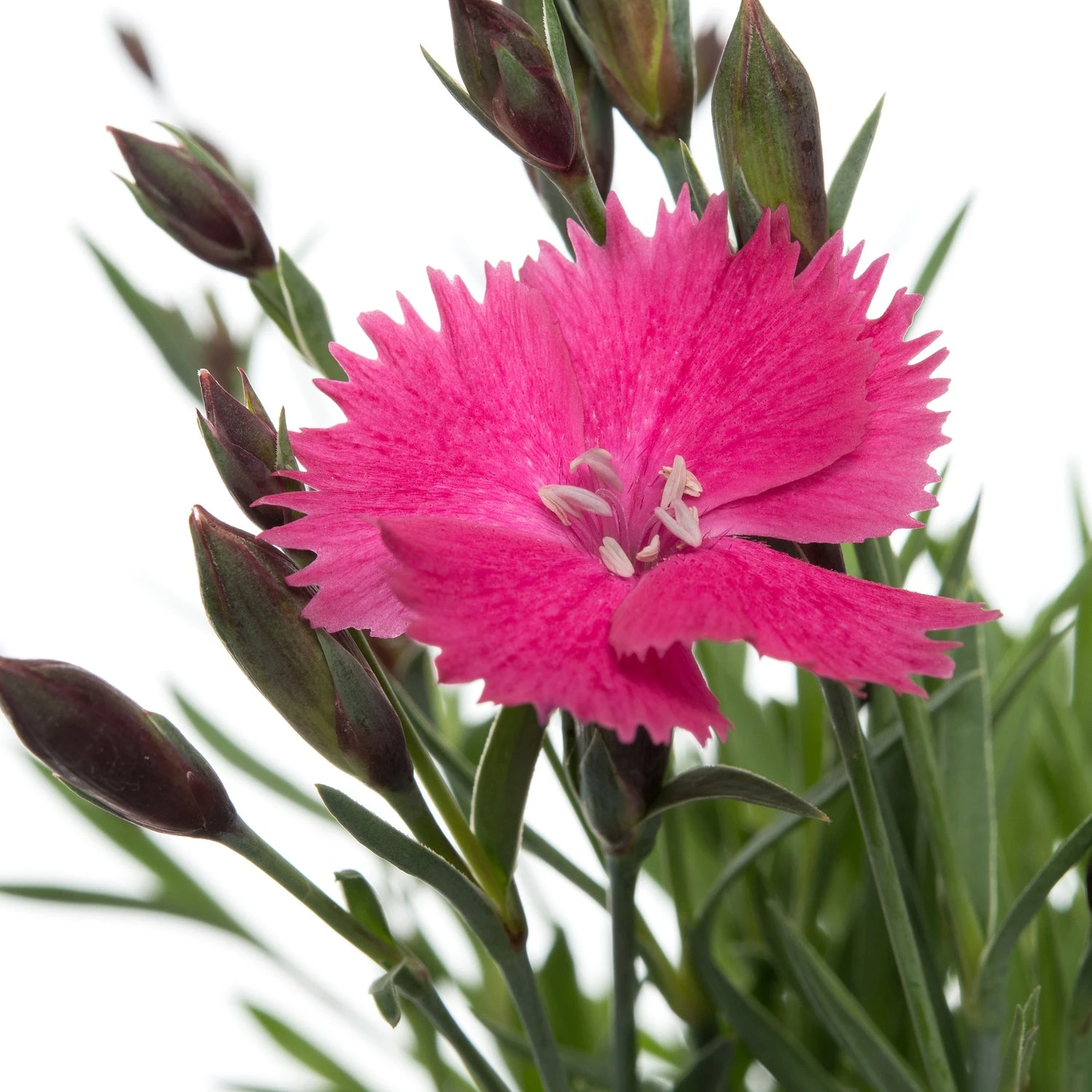 Een dwerganjertje met leuke gevulde roze bloemetjes en blauwgroen grasachtig loof. Door zijn compacte groei is er altijd wel een plekje dit vinden in je border, in je rotstuin of in je plantenbak. De mooie roze bloemen bloeien vrij lang, geuren licht en hij is ook nog eens bestand tegen de winter (tot ± -5⁰C)